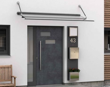 Die Vordachkonstruktionen bestechen durch optische Leichtigkeit und modernes Design, extreme Variantenvielfalt mit den gleichen Komponenten von Wandanschluss, Kragarm und Regenrinnen. Die Regenrinnen werden modellabhängig als große Regenrinne oder als kleine Tropfenrinne ausgeführt. Konsolenvarianten unter dem Dach sowie seitlich und auch Zugstangen-Varianten sind möglich. Optional ist jedes Vordach mit einer LED-Lichtleiste ausstattbar. Seitliche Regen- und Windschutzblenden sind möglich.
