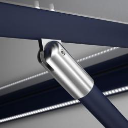 Die Vordachkonstruktionen bestechen durch optische Leichtigkeit und modernes Design, extreme Variantenvielfalt mit den gleichen Komponenten von Wandanschluss, Kragarm und Regenrinnen. Die Regenrinnen werden modellabhängig als große Regenrinne oder als kleine Tropfenrinne ausgeführt. Konsolenvarianten unter dem Dach sowie seitlich und auch Zugstangen-Varianten sind möglich. Optional ist jedes Vordach mit einer LED-Lichtleiste ausstattbar. Seitliche Regen- und Windschutzblenden sind möglich.